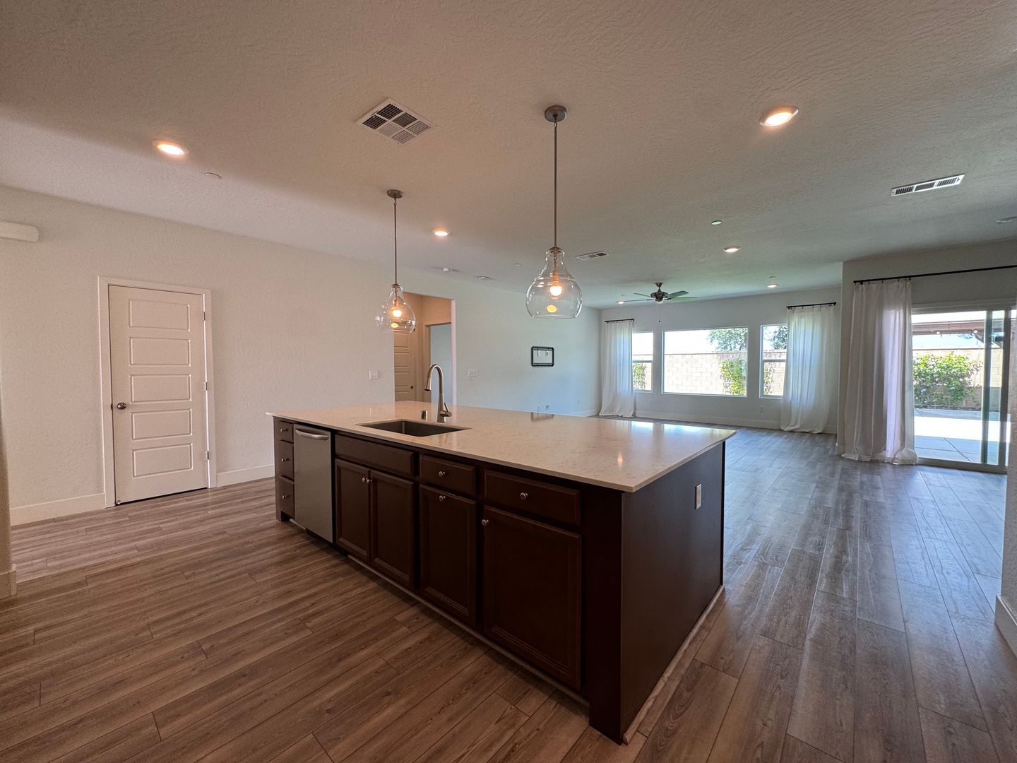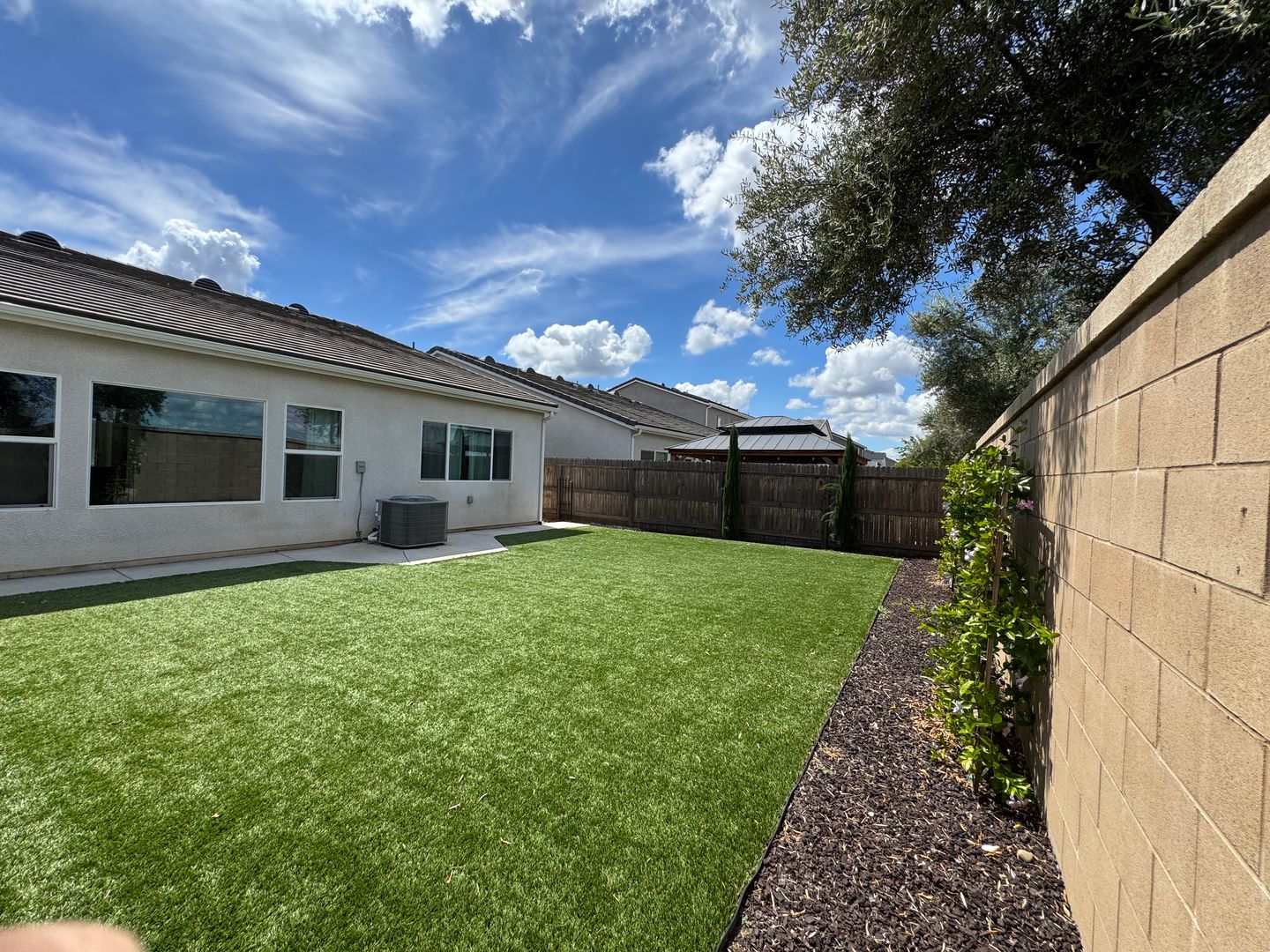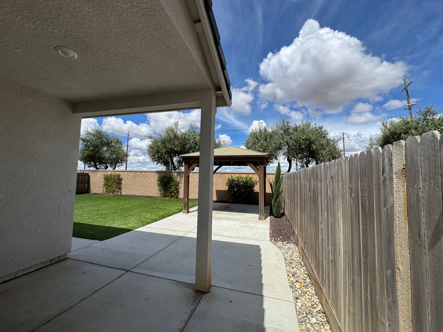 This SOLAR powered single family home has approximately 1787 sqft and offers an open floor plan with a great room, dining area, spacious kitchen with a huge island. The beautiful upgrades and finishes throughout include tile floors, carpets in bedrooms, granite counters, stainless steel gas range, dishwasher & built-in microwave, garbage disposal, central heating & air conditioning, ceiling fans in every room. Laundry room, 2-car garage with electric opener. Landscaped front and backyard with automatic sprinklers, covered patio and a Gazebo. COMMUNITY POOL & JACUZZI!!! Clubhouse & access to community events. Take Ave 12 to Lodge Rd S, turn right onto Expedition Wy, right on Mesa Drive, then left on Wishon Ave W. Located close to schools, parks, shopping and freeways. Community includes a park with playground and bike paths. YARD SERVICE INCLUDED! Renter's Insurance Required. Addendum: CC&R's and House Rules. 1 small pet under 20lbs!