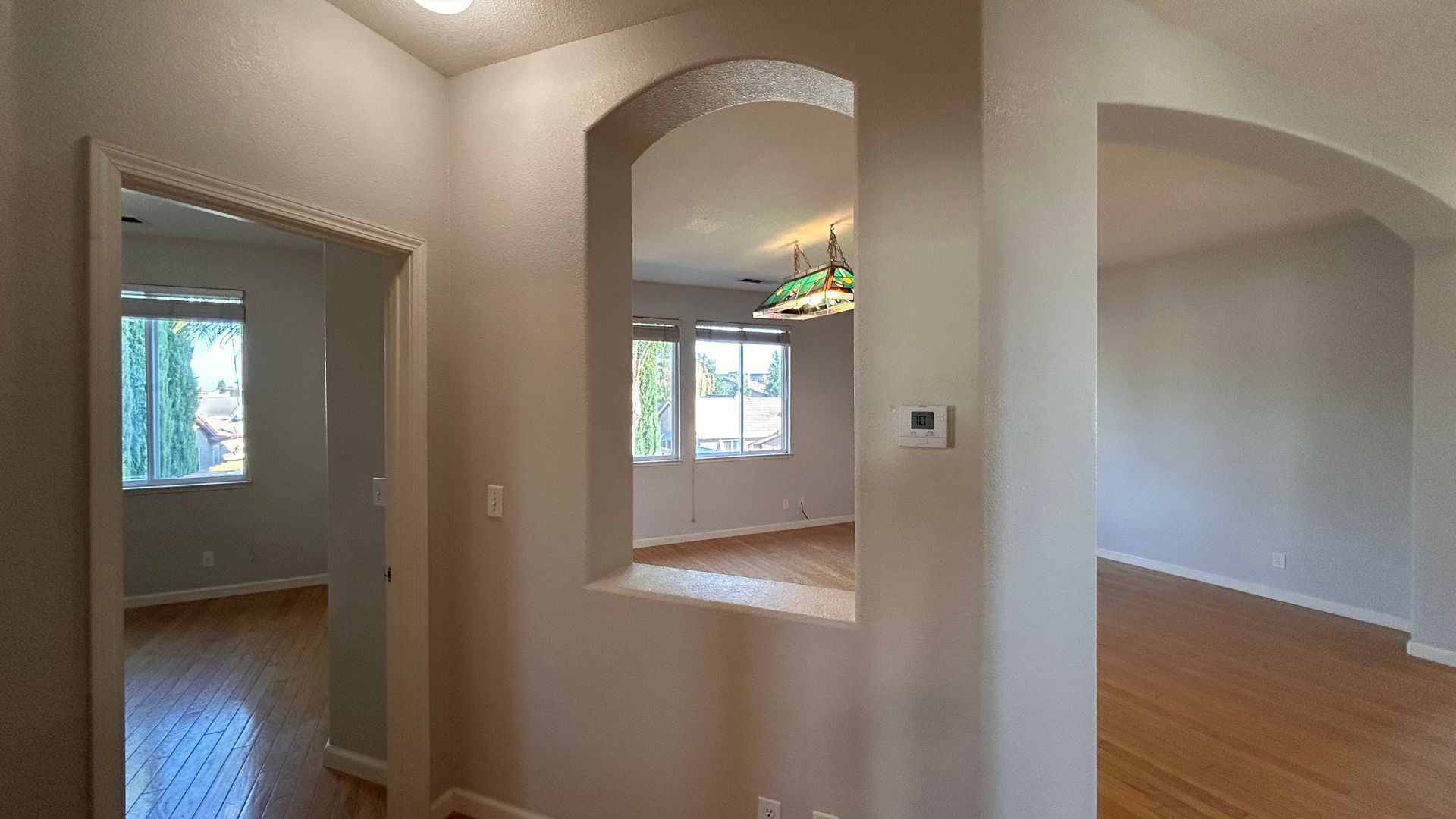 This two story single family home has one downstairs bedroom and approximately 2704 square feet, family room, living room, dining room, game room, breakfast nook, hardwood & tile flooring, blinds, corian counters, electric range, dishwasher, microwave, garbage disposal, laundry room, central heat & air, ceiling fans, fireplace, 2 car garage with electric opener, front yard with a courtyard and automatic sprinklers, backyard with low maintenance artificial lawn. Close to schools, parks, shopping. Addendum to be signed: 12-month lease/Renters insurance required. No pets.