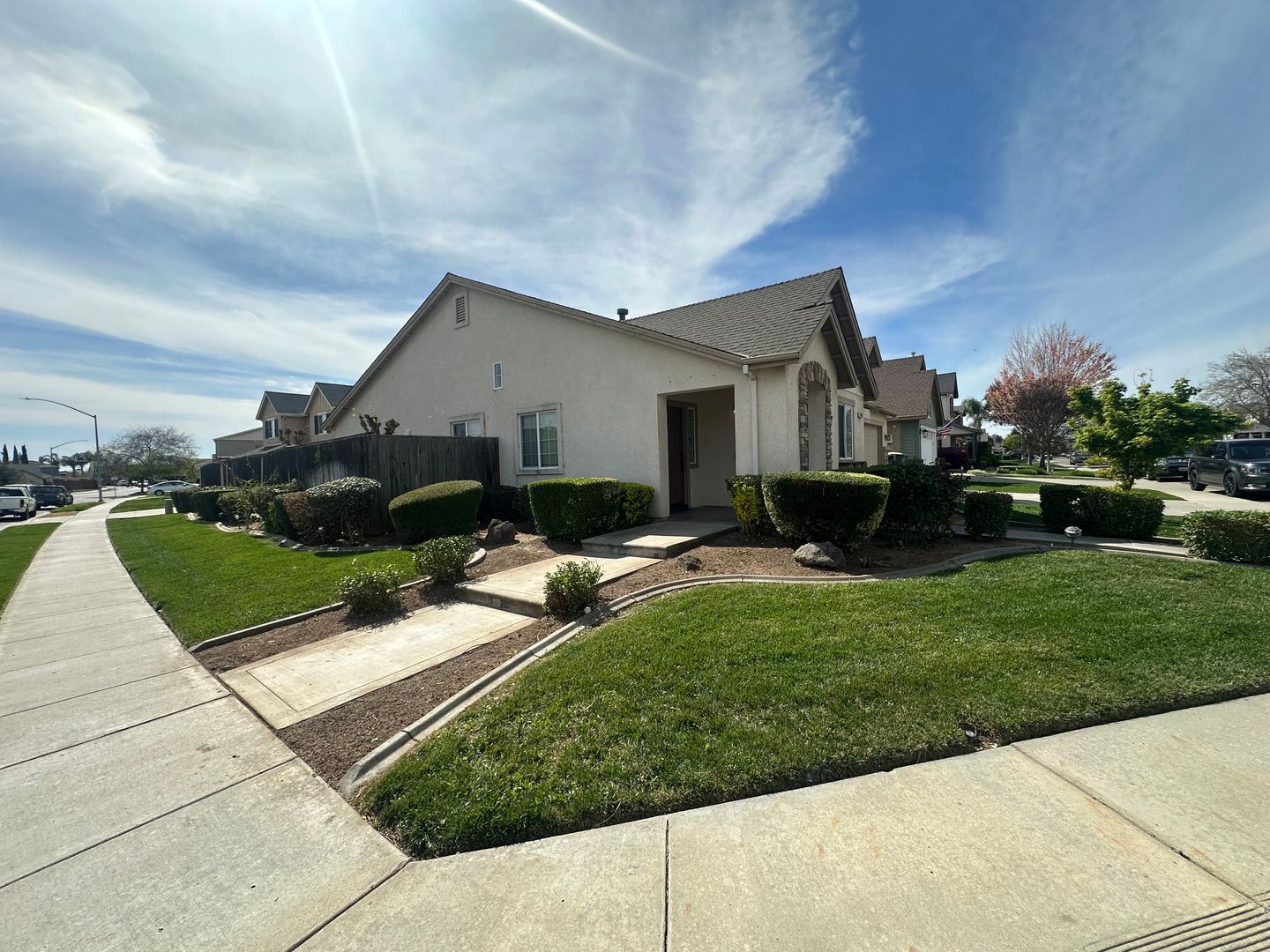 This single-family home is located on a corner lot, approximately 1,387 sqft with a living room, dining area, NEW laminate flooring, granite counters, electric range, dishwasher, microwave, garbage disposal, blinds, ceiling fans, central heating & air conditioning, gas fireplace, inside laundry room, two-car garage w/ electric opener, front yard landscaped w/ automatic sprinklers, backyard landscaped w/ automatic sprinklers and large patio. Close to schools, parks, and shopping. Located Oakdale Rd to Gallery Drive. One Year Lease Required. Renter's Insurance Required. No pets. Zillow rental applications are not accepted.