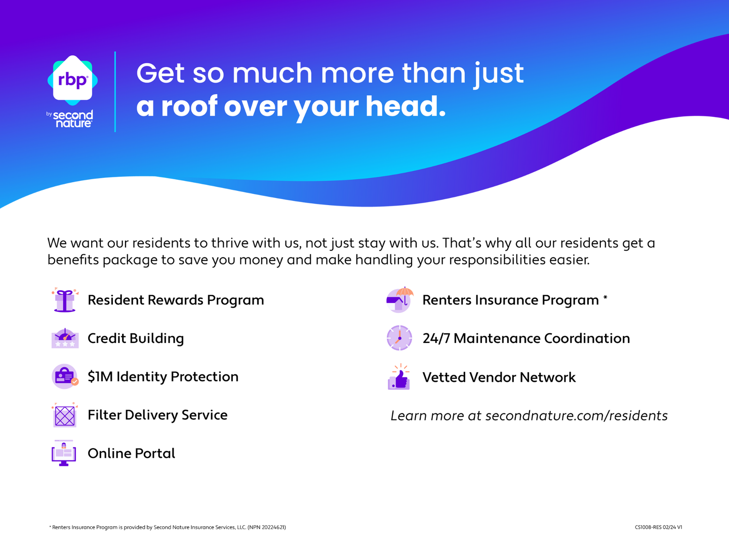 Residents may enroll in a Resident Benefits Package (RBP) for an additional monthly fee ranging from $18.00 - $36.95 per month. The RBP includes renter’s insurance, HVAC air filter delivery, credit building to help boost the resident’s credit score with on-time rent payments, up to $1M Identity Theft Protection, and a resident rewards program. The RBP delivers savings and convenient, professional services that make taking care of your home second nature. By enrolling, applicant agrees to pay the applicable cost disclosed on the property listing, payable with rent.