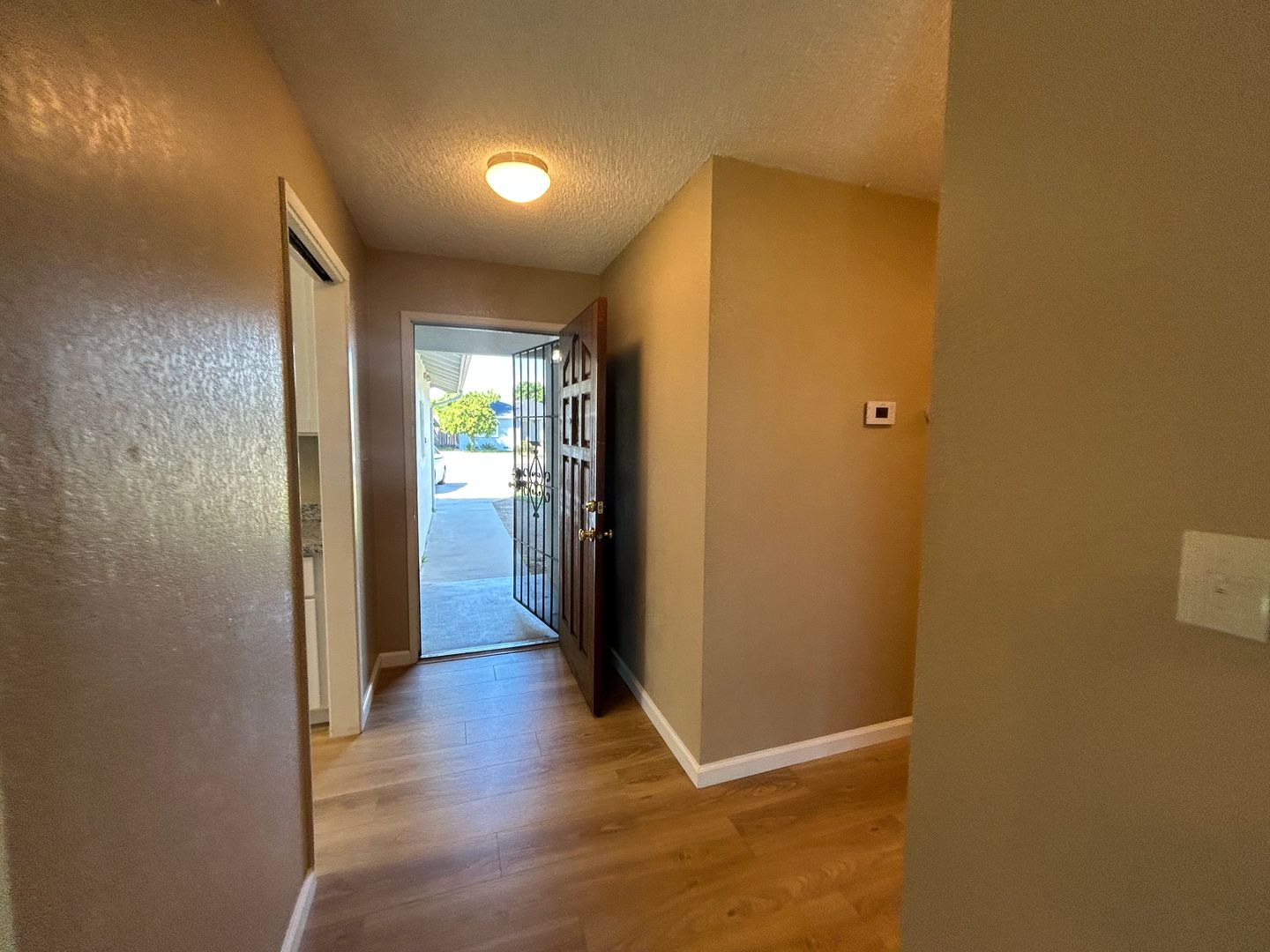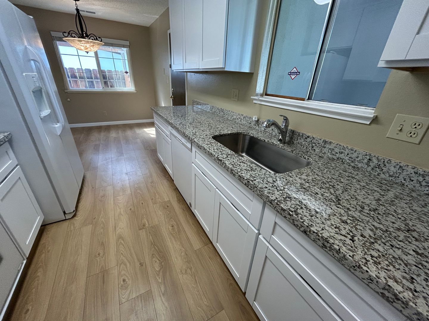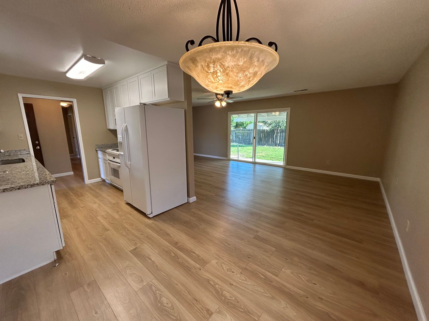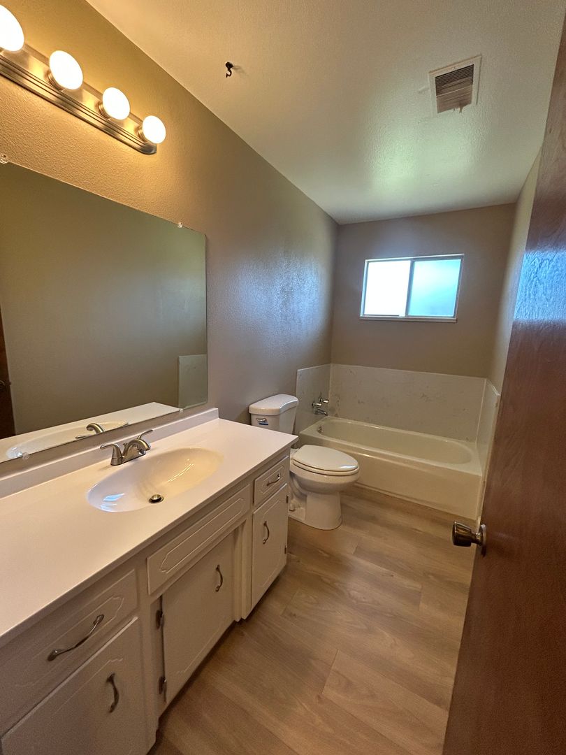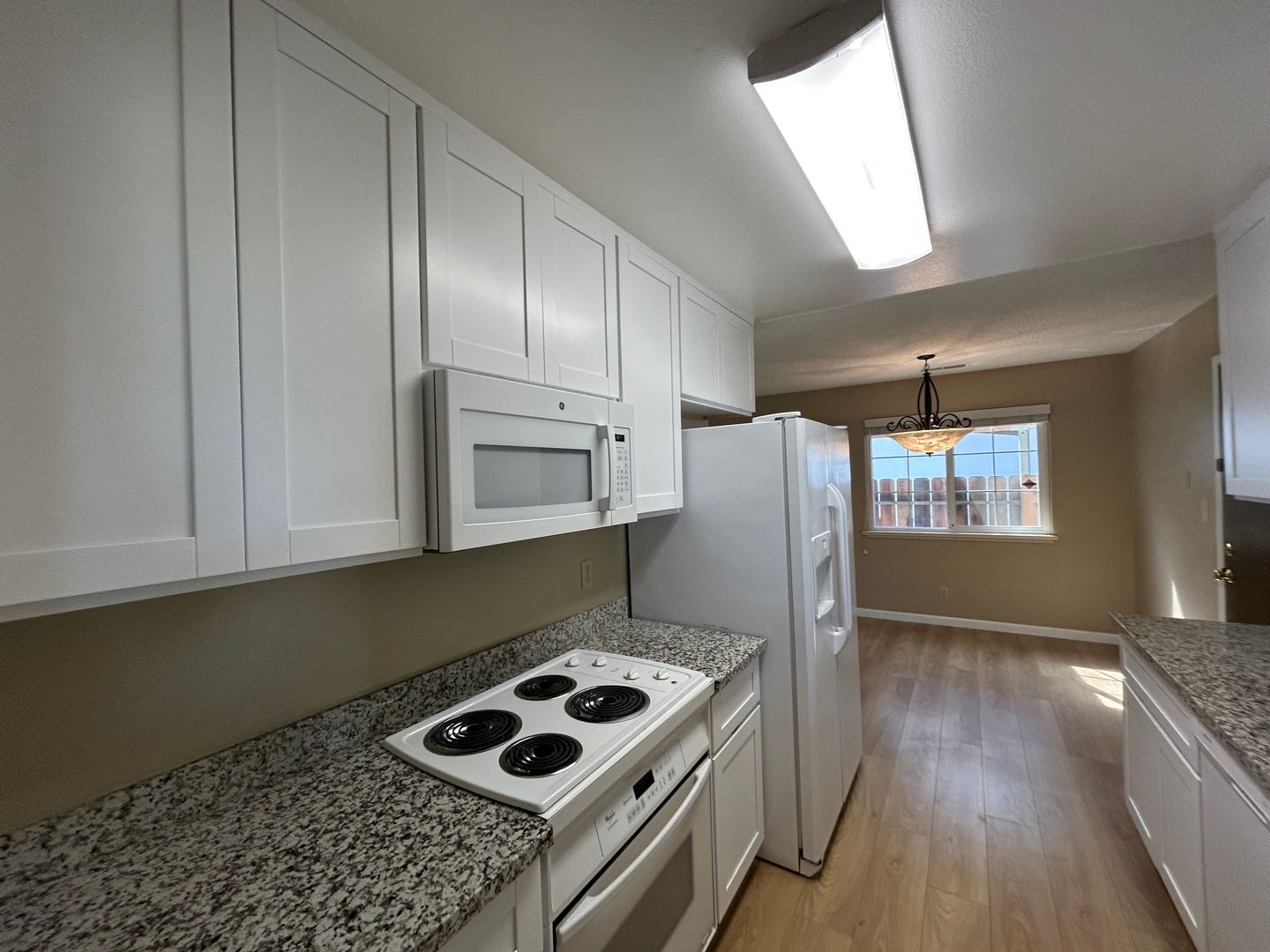 This remodeled single family home has approximately 1,200 square feet with a large living room, dining area, vinyl plank floors throughout, blinds, electric range, dishwasher, above-the-range microwave, fridge, garbage disposal, granite counters, laundry hook-ups (220-V), central heat & air, two-car garage w/electric opener, front & backyard. Close to CSU Stanislaus, Emanuel Medical Center, schools, parks, shopping and other recreation! Located Monte Vista Avenue to Geer Rd, left at Hedstrom Rd. No Pets. L/D.