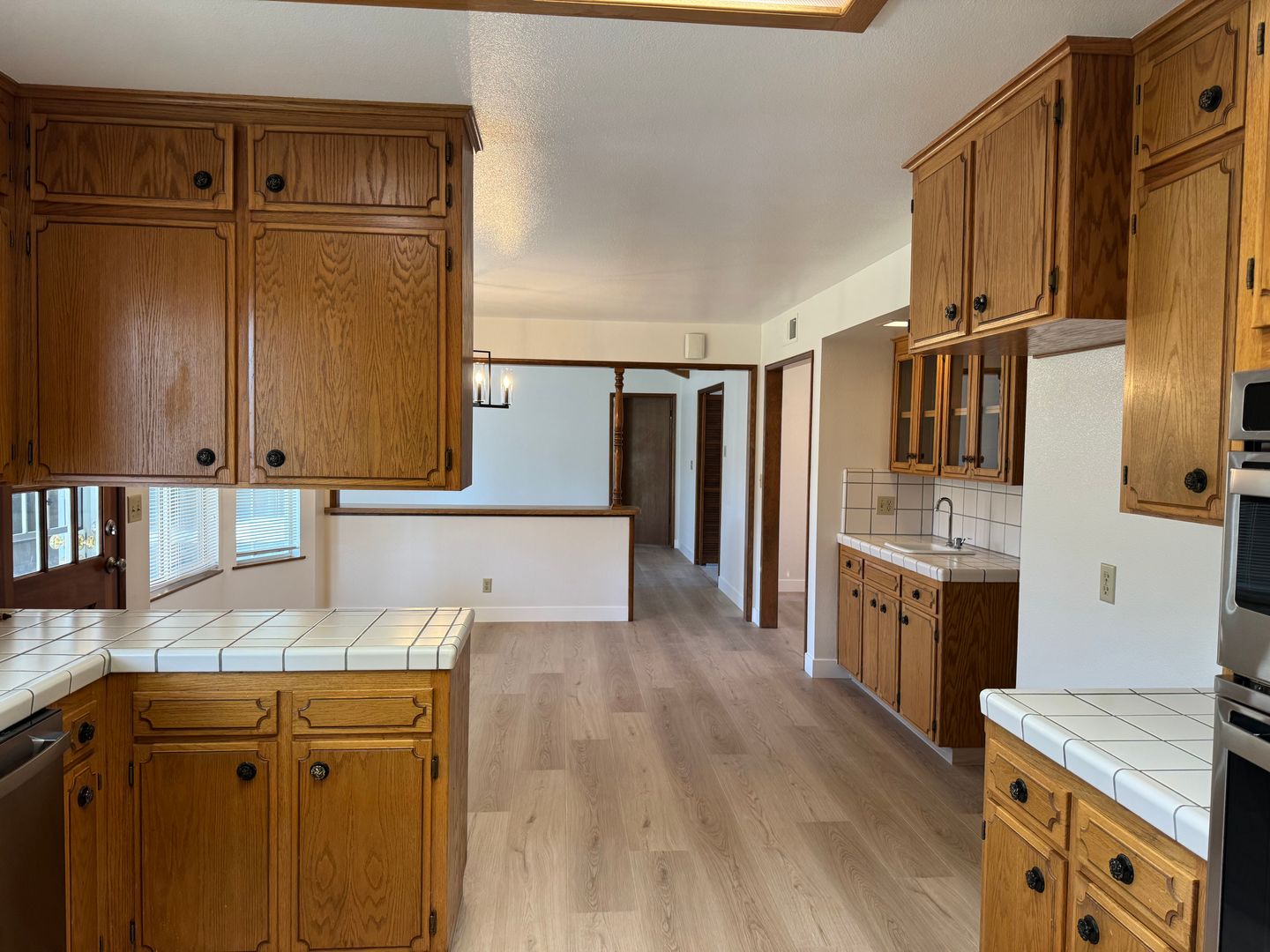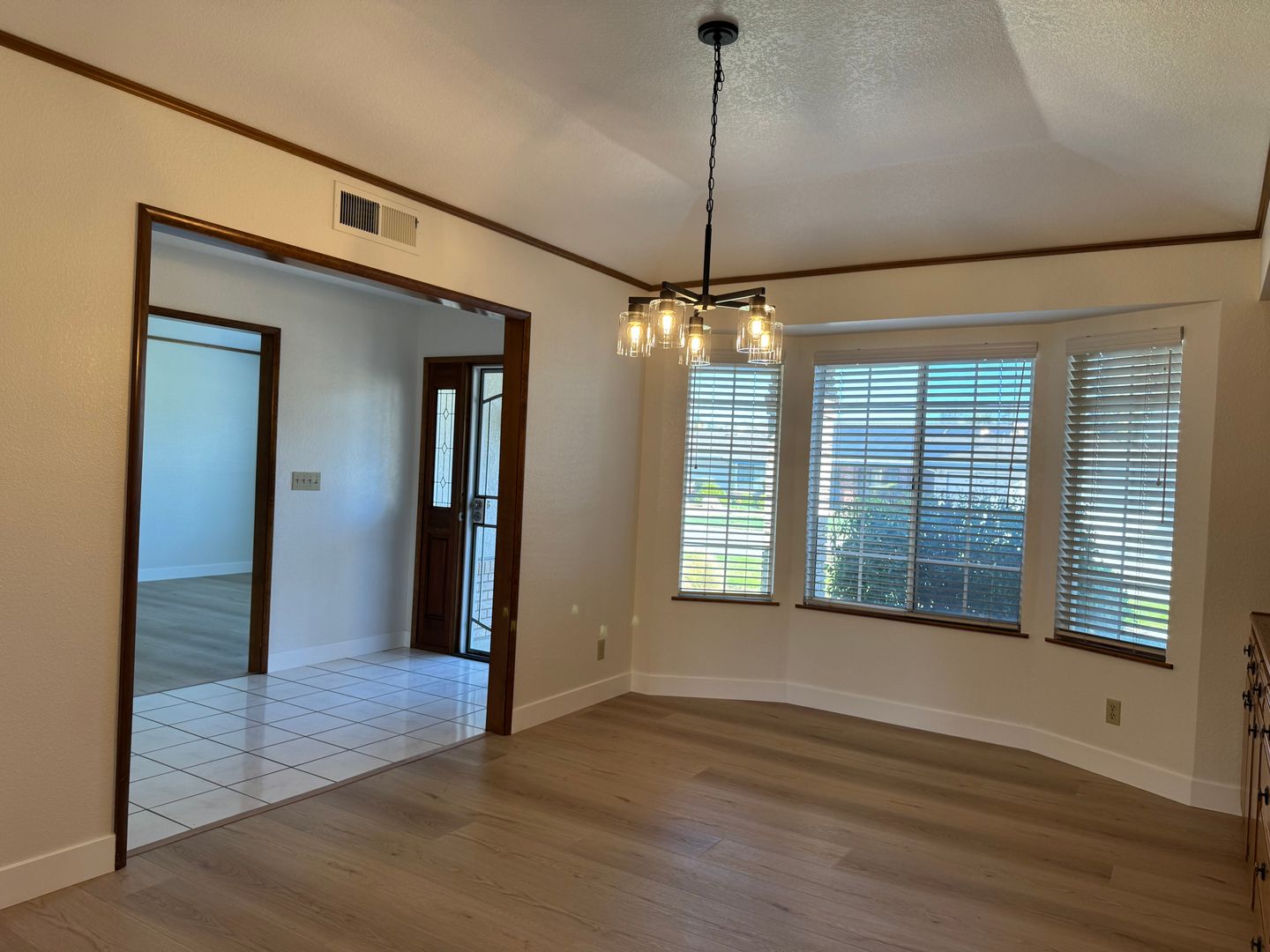 This custom single family home with a living room, family room, formal dining room, dining area off kitchen, NEWLY painted interior, NEW LVP flooring throughout, tile floors in entry way & master bathroom, tile counters, NEW stainless steel appliances, NEW electric cooktop, NEW range hood, NEW dishwasher, NEW built-in microwave/oven, garbage disposal, NEW faucets in kitchen & bathrooms, laundry room, central heat & air, fireplace, NEW chandeliers in formal dining room & kitchen dining area, ceiling fans, spacious walk-in closet in master bedroom, 2 car garage with electric opener, Landscaped front and backyard with automatic sprinklers, covered patio. YARD SERVICE INCLUDED!!! From W. Figarden Drive, turn onto N. Alva Ave, right on W. Menlo Ave, continue onto N. Dewey Ave, then turn left on N. San Pedro. Close to schools, parks, shopping. Renter's Insurance Required. One Year Lease Required. Pets very strictly negotiable (1 small pet under 20lbs).