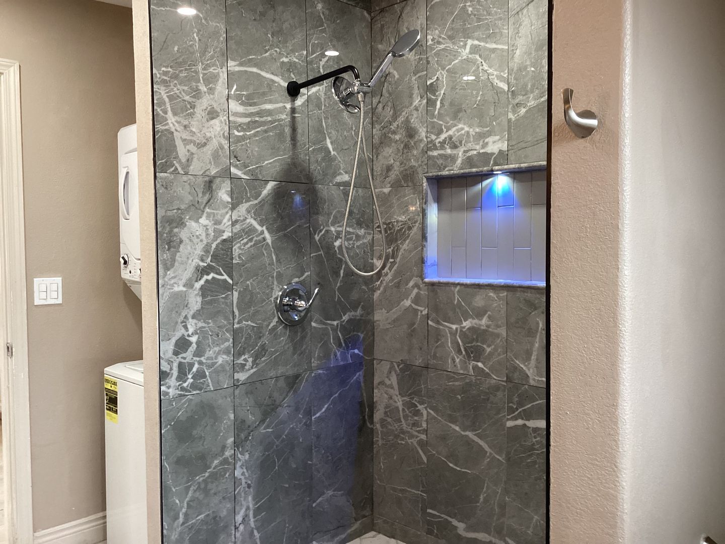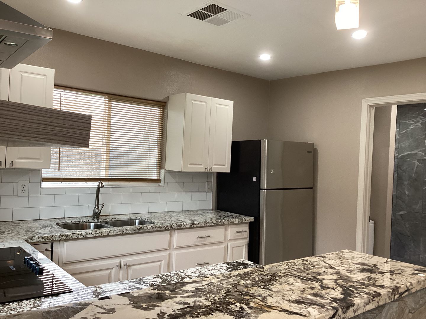 This REDMODEDLED back house (ADU) with lots of updates, has approximately 1100 square feet with an open floor concept, great room, dining area, laminate flooring, tile floors, carpets in the bedrooms, updated kitchen with granite counters, electric cooktop, garbage disposal, stainless steel refrigerator, laundry with stackable washer & dryer, central cooling & wall heating, ceiling fans in bedrooms. Landscaped side yard with a mature fruit tree. Take N. Marks Ave to W. Saginaw way. Close to school, park & shopping. Pets very strictly negotiable (1 small pet under 20lbs, outside only). L/D!